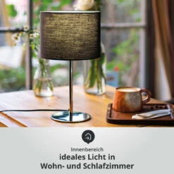 Tischleuchte Mit Fuß Aus Kunstharz Grau Mit Stoffschirm Weiß Sockel E14 L180xB180xH310mm