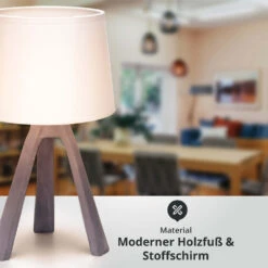 Tischleuchte Mit Fuß Aus Kunstharz Holzoptik Mit Stoffschirm Weiß Sockel E14 L180xB180xH310mm