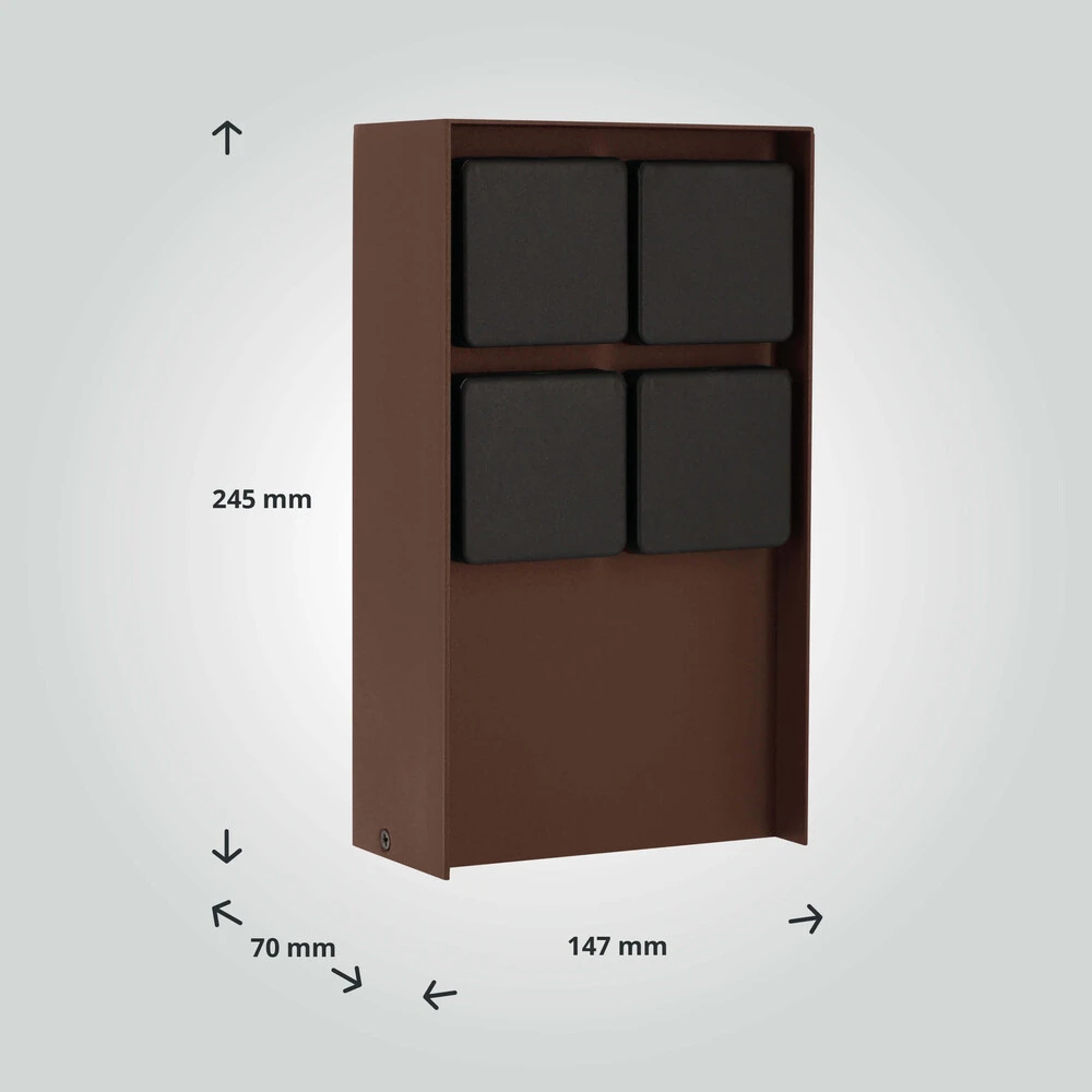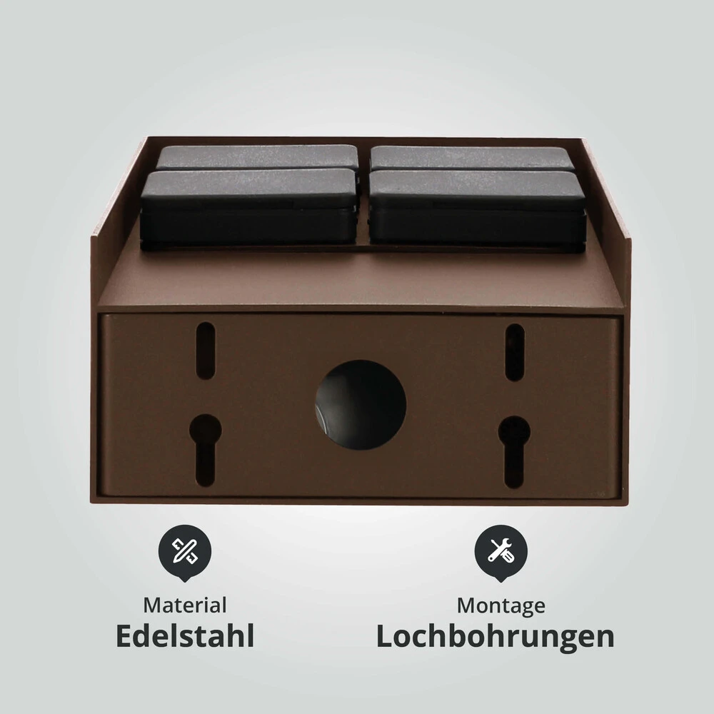 Die rostbraune Pulverbeschichtung verleiht der Außensteckdose einen trendigen und abgenutzten Used-Look.