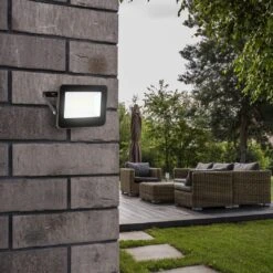 Die Außenreflektorleuchte Flood ist perfekt geeignet für die Beleuchtung des Gartens rund um das Haus. Das schwarze Gehäuse, das aus Metall gefertigt wurde, wird durch eine transparente Abdeckung aus Kunststoff ergänzt. Der Reflektor hat eine eingebaute LED-Lichtquelle mit einer Leistungsaufnahme von 10 W, einem Lichtstrom von 1100 Lumen und einer Farbtemperatur von 4000 K. Die Lebensdauer der Lichtquelle, die mit neutralweißem Licht leuchtet, ist 20.000 Stunden. Dank des Designs dieser Leuchte kann man das Licht von Flood flexibel steuern, so können z.B. einzelne Pflanzen oder bestimmte Teile des Gartens beleuchtet werden. Der Abstrahlwinkel ist 110°. Die Breite dieser technischen Leuchte ist 103 mm, ihre Höhe ist 77 mm. Die Flood verfügt über die Schutzart IP65, d. h. sie ist vollständig abgedichtet und gegen festes Material und Schmutz sowie Niederdruckwasserstrahlen geschützt. Wir bieten 5 Jahre Garantie auf diese Lampe.