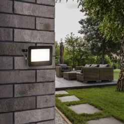 Die Außenreflektorleuchte Flood ist perfekt geeignet für die Beleuchtung des Gartens rund um das Haus. Das schwarze Gehäuse, das aus Metall gefertigt wurde, wird durch eine transparente Abdeckung aus Kunststoff ergänzt. Der Reflektor hat eine eingebaute LED-Lichtquelle mit einer Leistungsaufnahme von 30 W, einem Lichtstrom von 3300 Lumen und einer Farbtemperatur von 4000 K. Die Lebensdauer der Lichtquelle, die mit neutralweißem Licht leuchtet, ist 20.000 Stunden. Dank des Designs dieser Leuchte kann man das Licht von Flood flexibel steuern, so können z.B. einzelne Pflanzen oder bestimmte Teile des Gartens beleuchtet werden. Der Abstrahlwinkel ist 110°. Die Breite dieser technischen Leuchte ist 176 mm, ihre Höhe ist 136 mm. Die Flood verfügt über die Schutzart IP65, d.h. sie ist vollständig abgedichtet und gegen festes Material und Schmutz sowie Niederdruckwasserstrahlen geschützt. Wir bieten 5 Jahre Garantie auf diese Lampe.