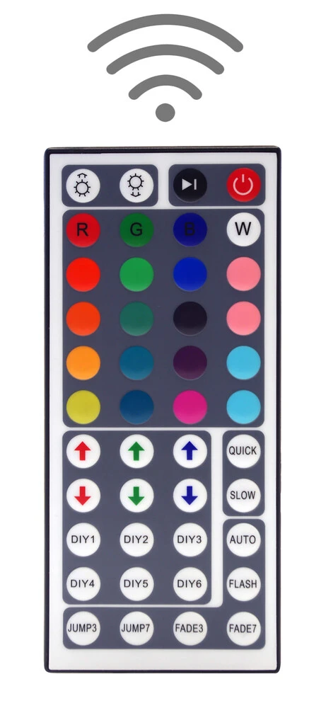 Die mitgelieferten 44 Tasten IR Fernbedienung bietet vielzählige Möglichkeiten fĂĽr Farbspiele. 20 Farben sind bereits vorprogrammiert, 6 Wunschfarben können zusätzlich präzise eingestellt und abgespeichert werden. Die Lichtintensität kann gedimmt werden und es sind verschiedene Farbeffektprogramme hinterlegt – Flash, Strobe, Fade und Smooth -, deren Geschwindigkeiten Du ändern kannst.