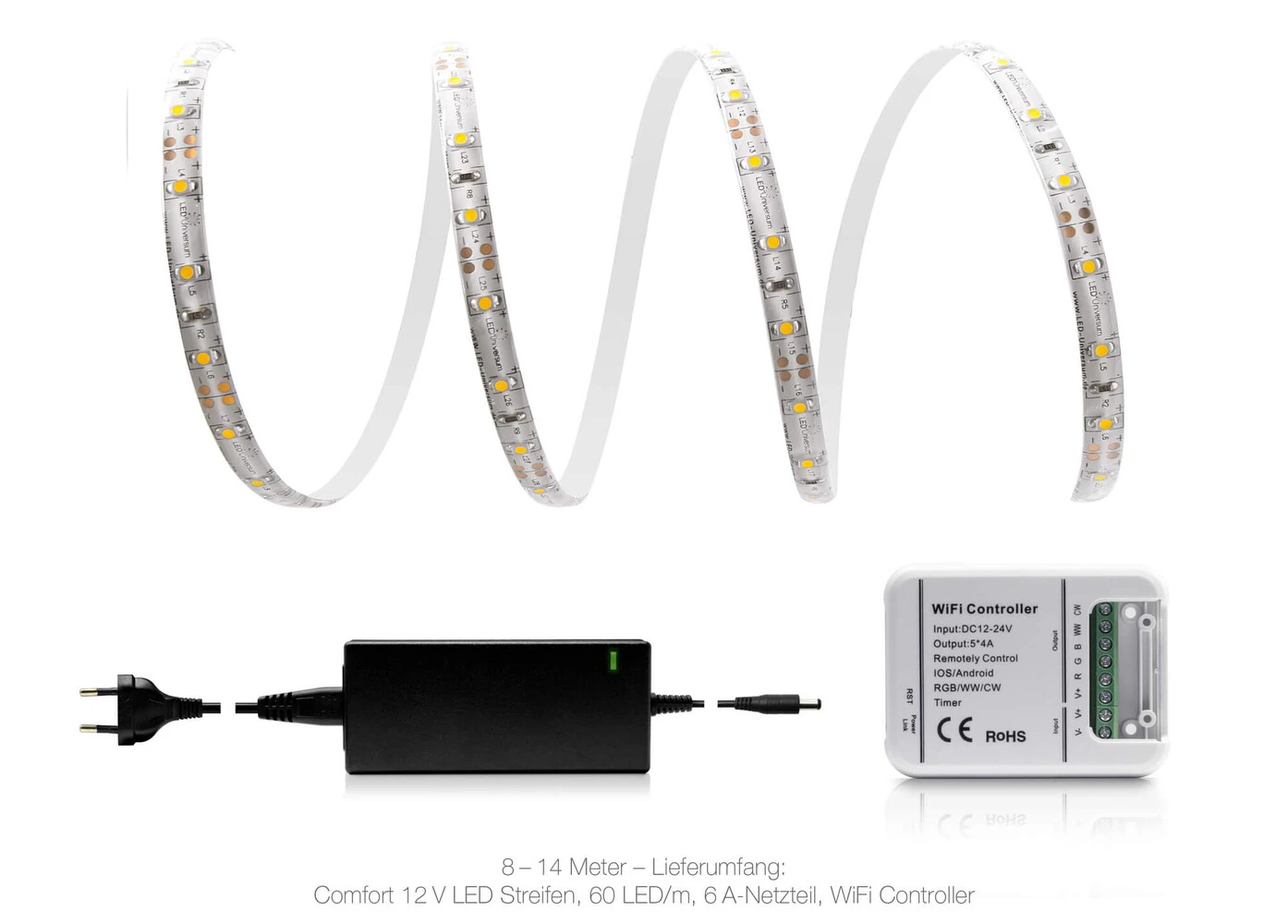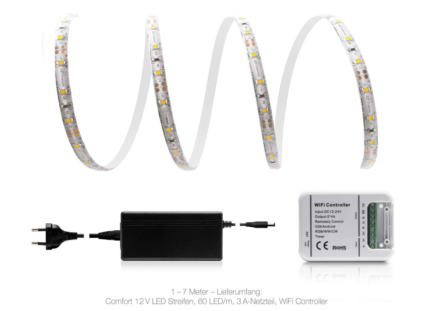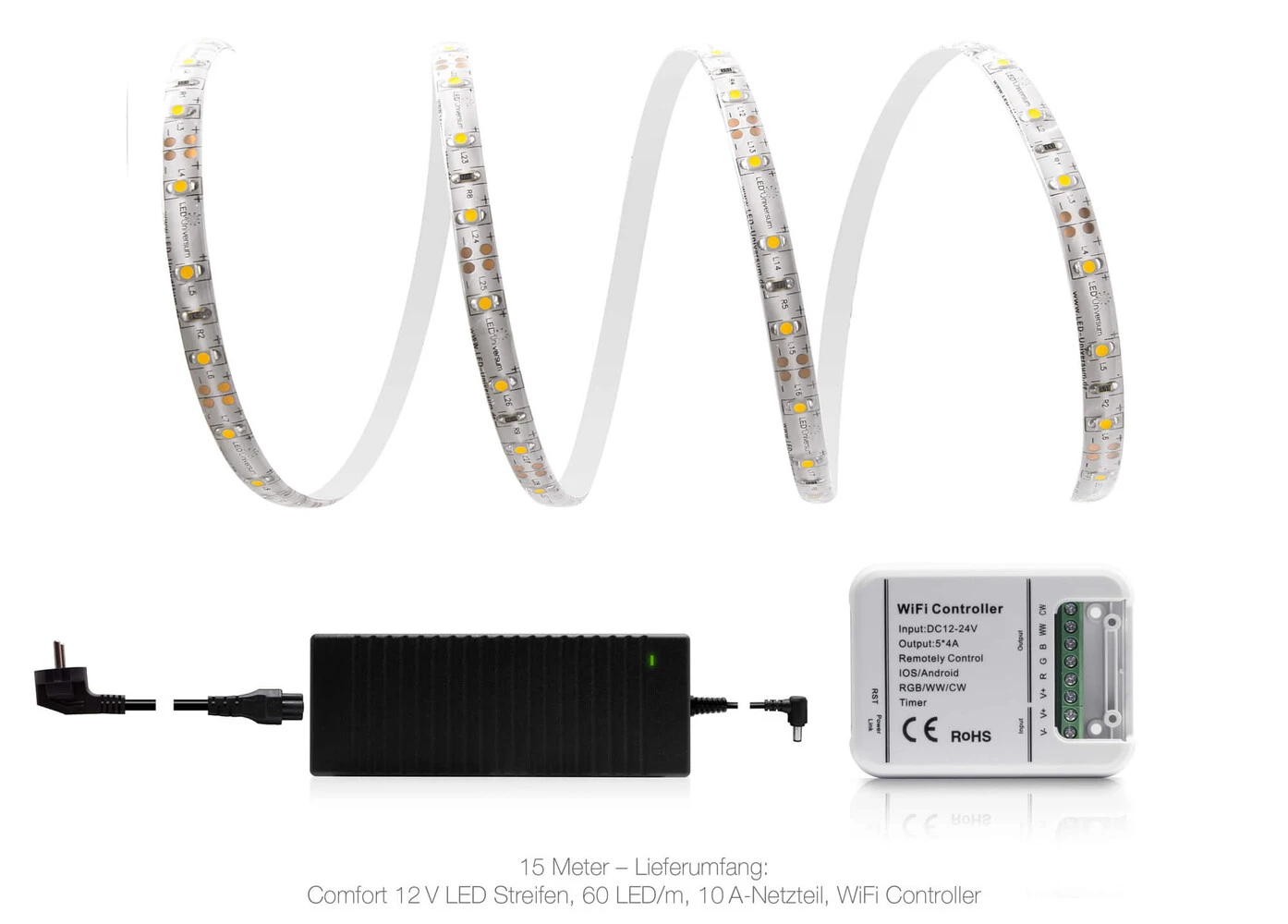 - Komplettset mit LED Band, WLAN Controller und Netzteil