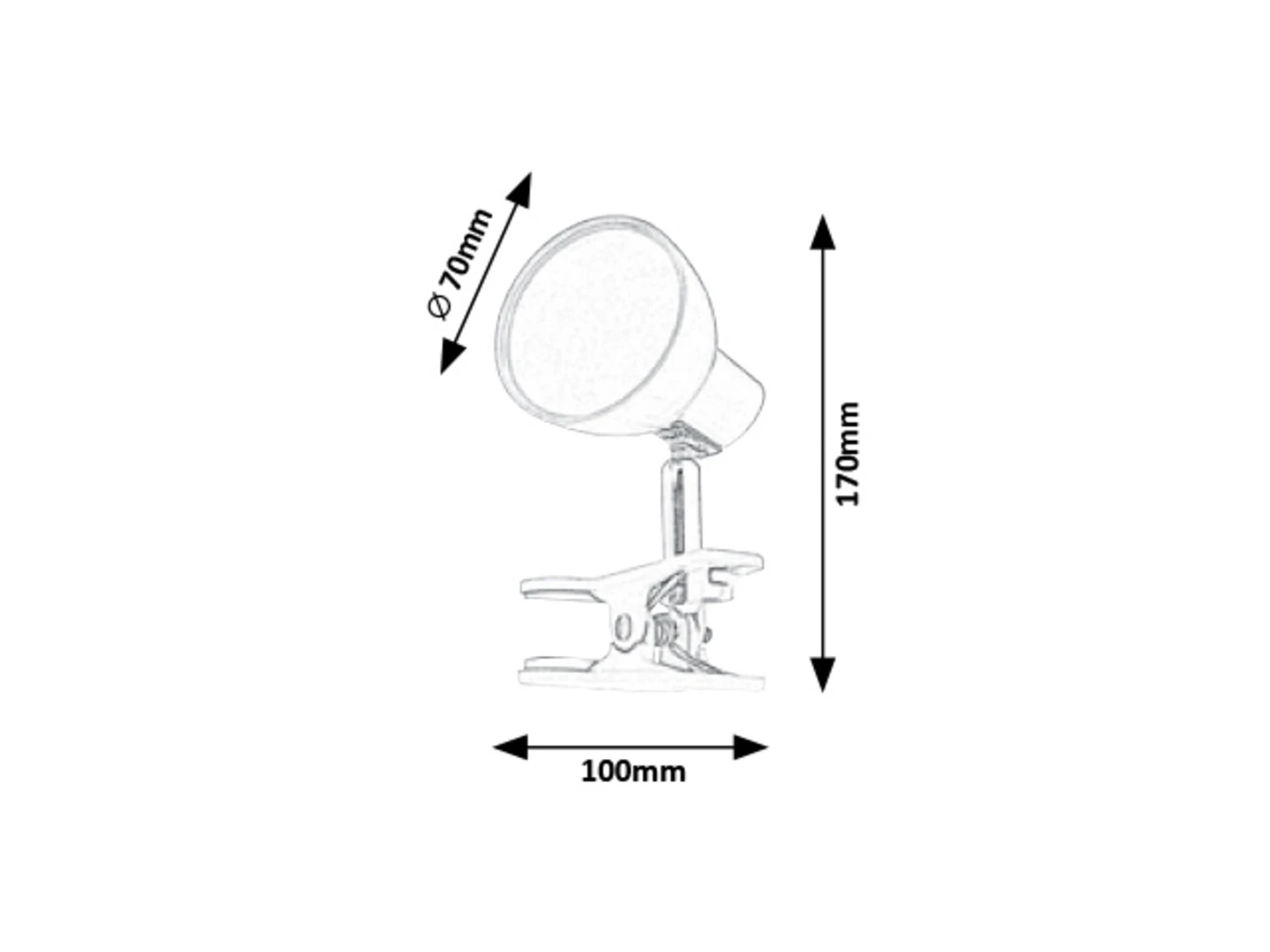 Die Noah Clip-On Lampe kann als praktische zusätzliche Lichtquelle im Wohnzimmer, Schlafzimmer oder Kinderzimmer verwendet werden. Ihr Hauptvorteil liegt in ihrer kompakten Größe und Mobilität: Sie können sie auf einem Tisch oder einem Regal montieren oder überall dort verwenden, wo Sie zusätzliche Beleuchtung benötigen. Die weiße Lampe aus Metall und Kunststoff ist 170 mm hoch, der Durchmesser des Lampenschirms beträgt 70 mm und der Clip der Lampe ist 100 mm lang. Diese funktionelle Lampe wird mit einem Schalter an einem Kabel verwendet und enthält ein eingebautes, energiesparendes LED-Leuchtmittel. Der Energieverbrauch des Leuchtmittels 5 W, seine Lichtstärke 360 Lumen, die Farbtemperatur 3.000 K und die Lebensdauer nicht weniger als 20.000 Stunden. Noah strahlt ein warmweißes Licht aus. Diese praktische Lampe kommt mit einer 5-Jahres-Garantie.