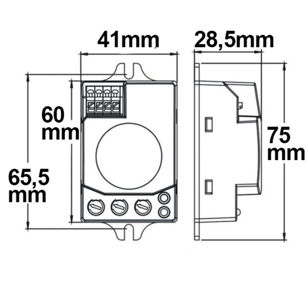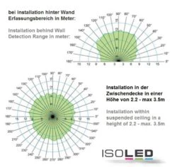 5.8GHz Radar, Schaltleistung max. 300W (bei kapazitiven Lasten wie z.B. LED-Driver), inkl. LUX-Sensor, Erfassungsradius 1-8 Meter einstellbar, Montagehöhe max. 3.5 Meter, Stromaufnahme Standby 0.9W, einstellbare Schaltzeit 10s – 30min