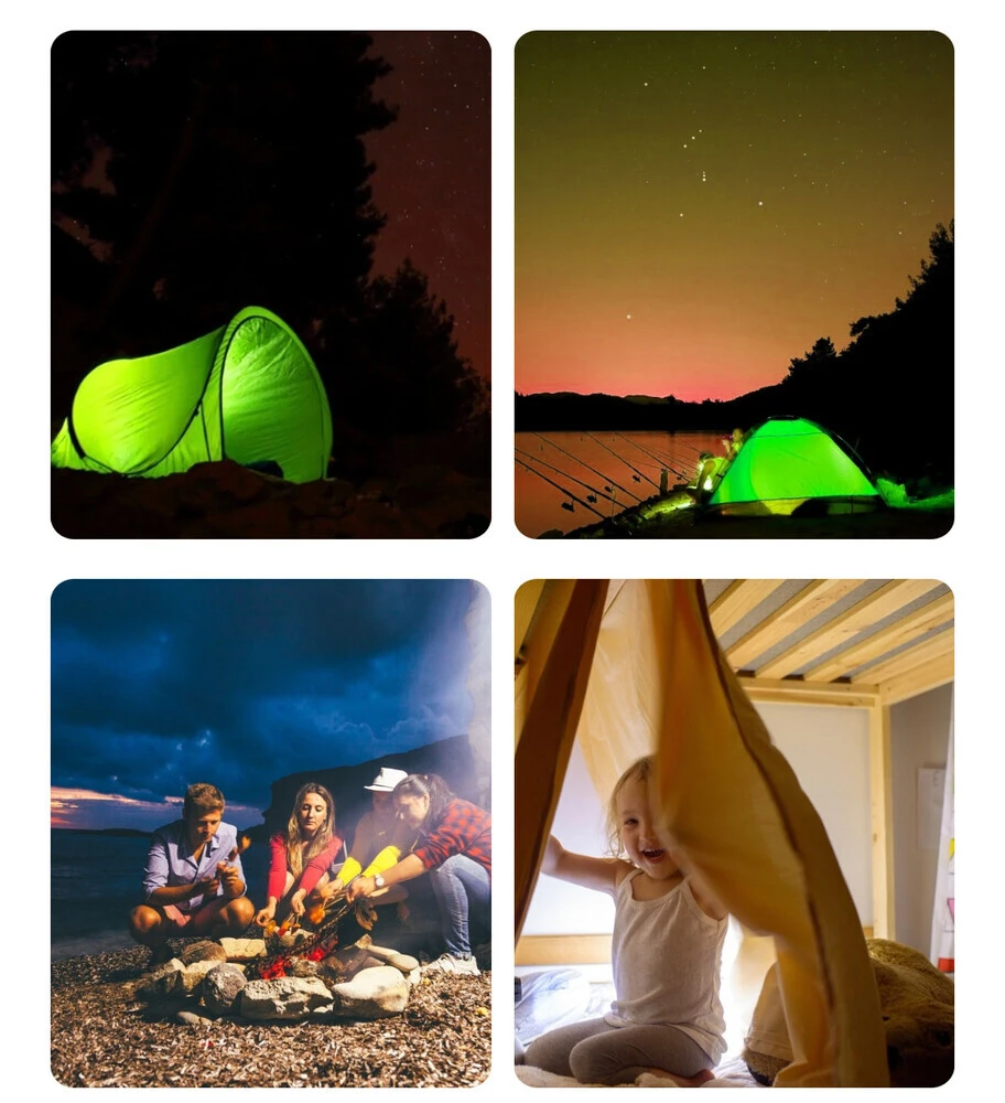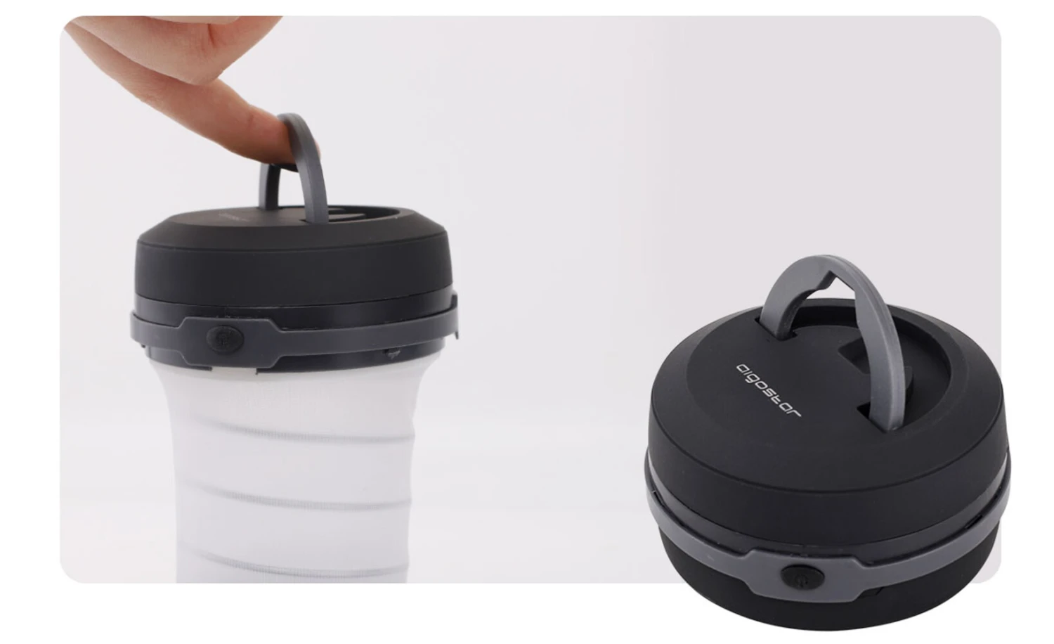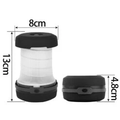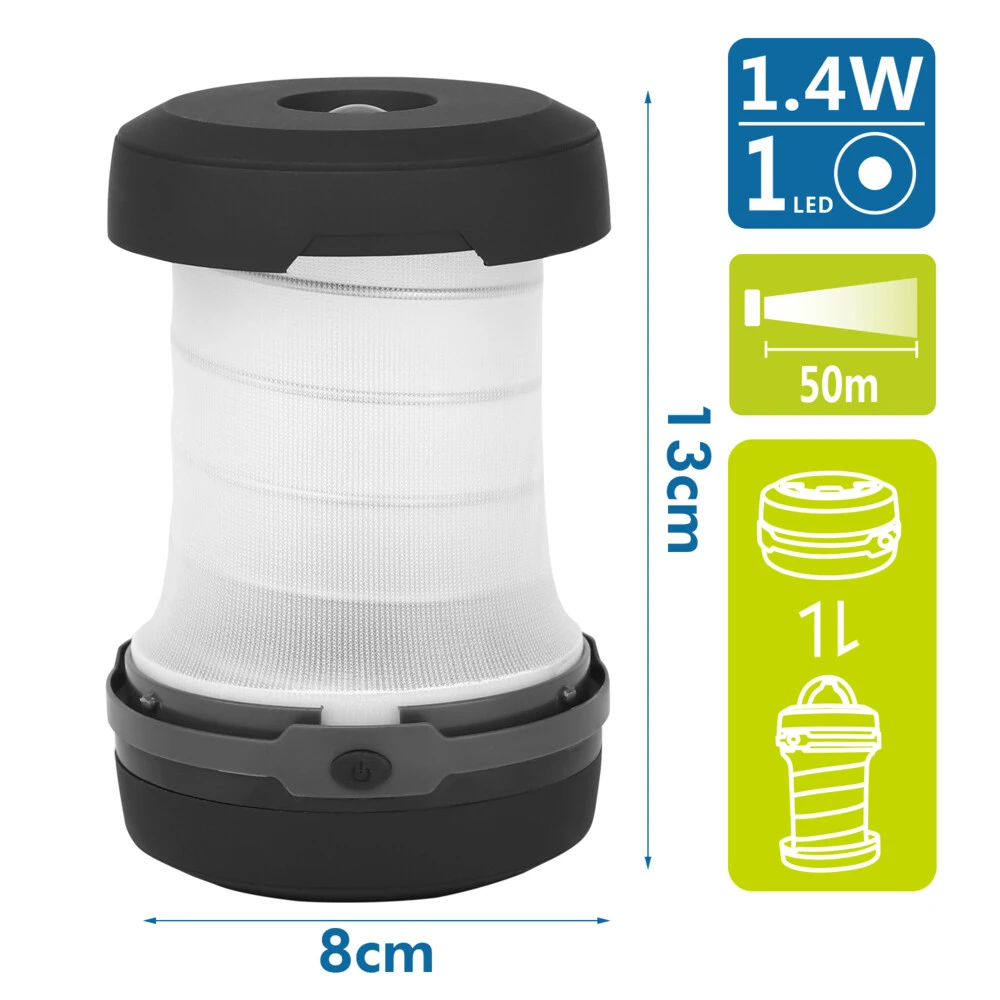 Sehr helle, batteriebetriebene Camping-Leuchte mit Griff bzw. Haken zum Hängen. Die Leuchte ist zusammenklappbar und sowohl als Taschenlampe, Tischleuchte oder als Camping-/Zeltleuchte verwendbar. Außerdem besitzt die Lampe drei Leuchtmodi: hell, weich, flackernd.