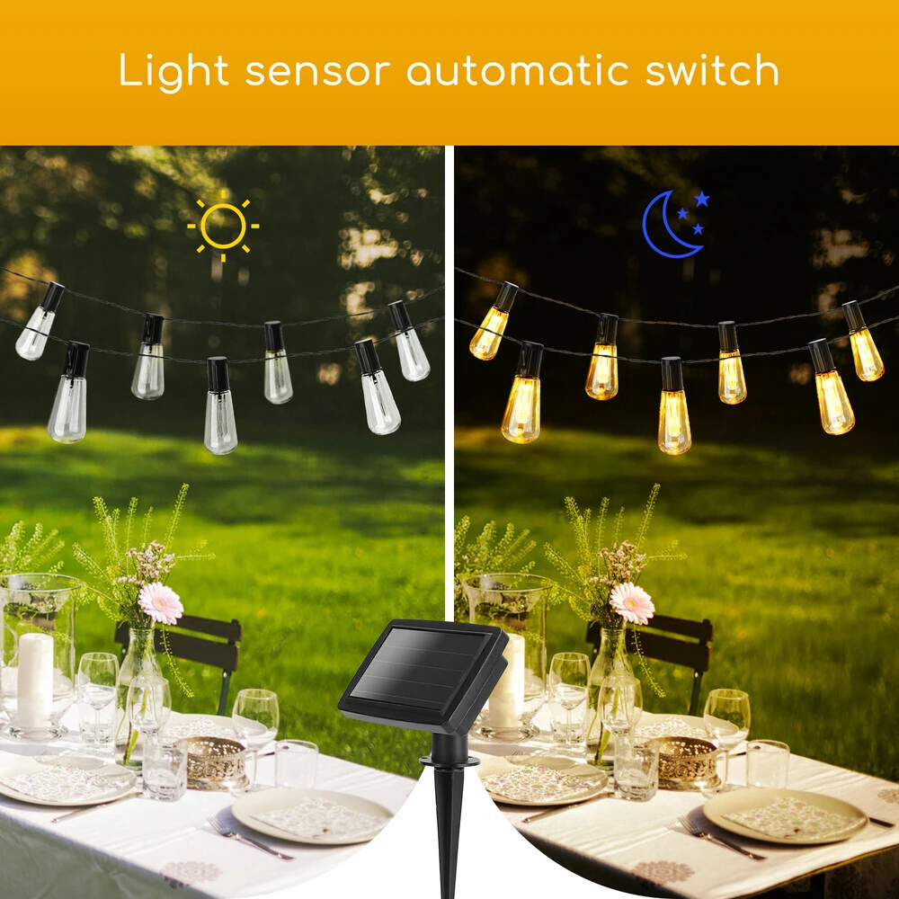 Tagsüber ist Solarpanel im Modus das Sonnenlicht zu absorbieren und automatisch Strom zu speichern, nachts leuchtet die Solar-Lichterkette automatisch, wenn es dunkel wird.