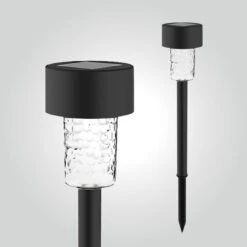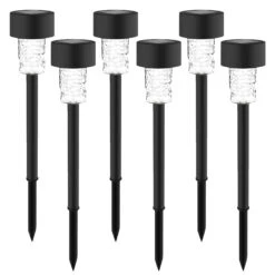 LED Solar Garten Erdspieß Zylindrisch Schwarz 33cm 6500K [3053] 6er Set