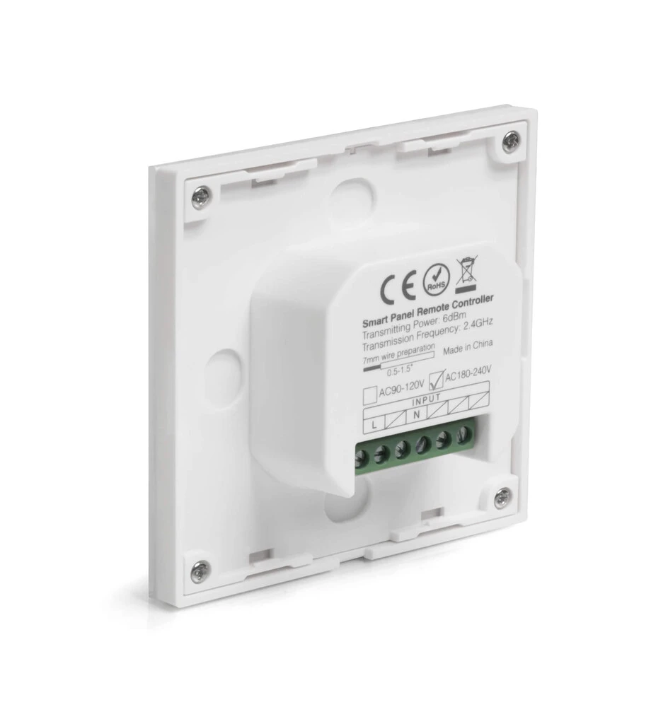 Das Touch Panel ist für eine Stromversorgung von 100 – 240V Wechselspannung ausgelegt. Die ultra-sensitive Glasplatte mit voller Touch-Steuerung ermöglicht Dir einen stufenlosen Schalter- und Dimmbetrieb. Auch die Installation ist sehr simpel gehalten. Das Touch-Panel wird mit dem Hausstrom verbunden und ist dadurch permanent betriebsbereit. Batterien müssen nicht gewechselt werden. Um das Panel aufnehmen zu können benötigst Du eine Abzweigdose mit einer Abmessung von 86 × 86 mm. Runde Unterputzdosen mit 68 mm Durchmesser bieten hingegen nicht genügend Platz.