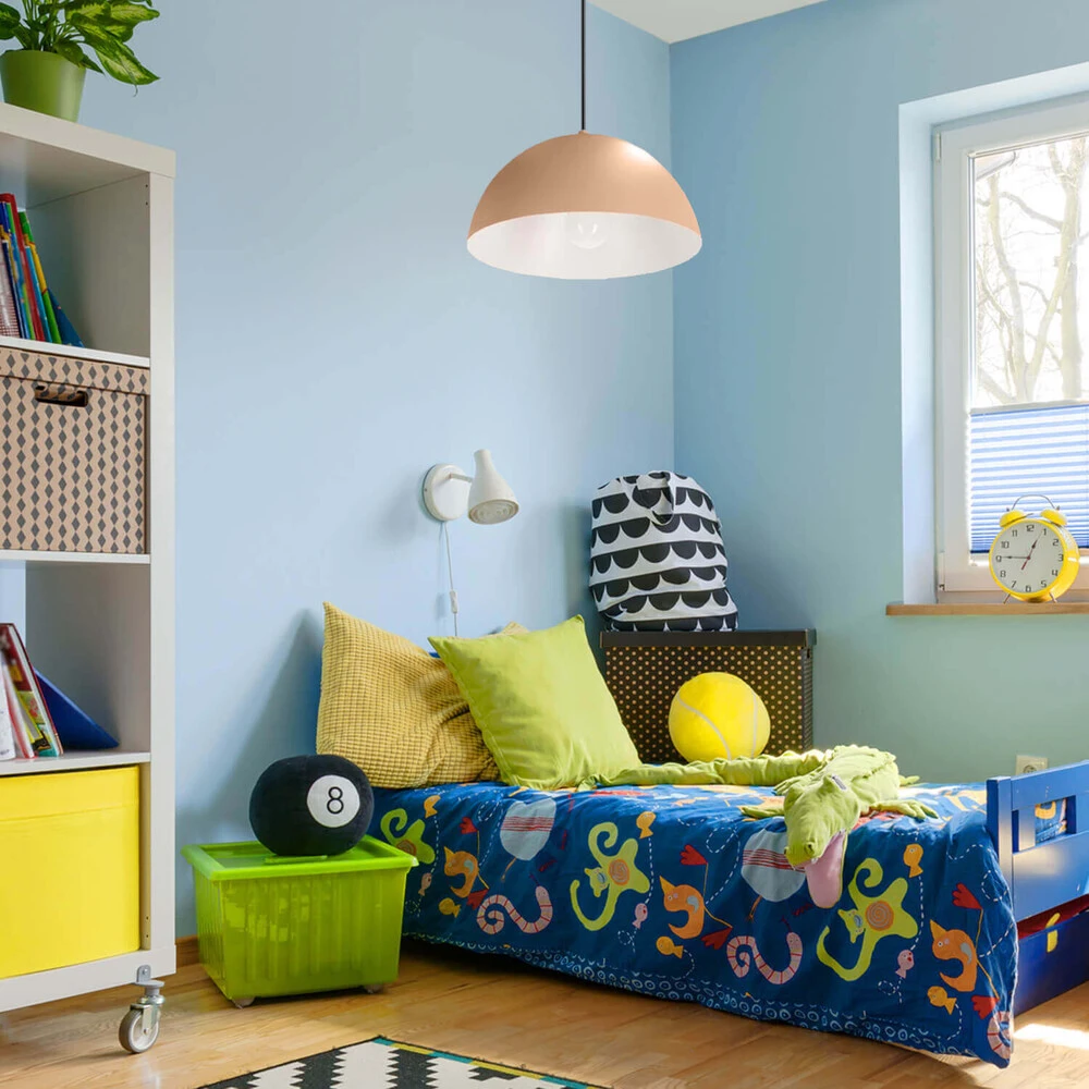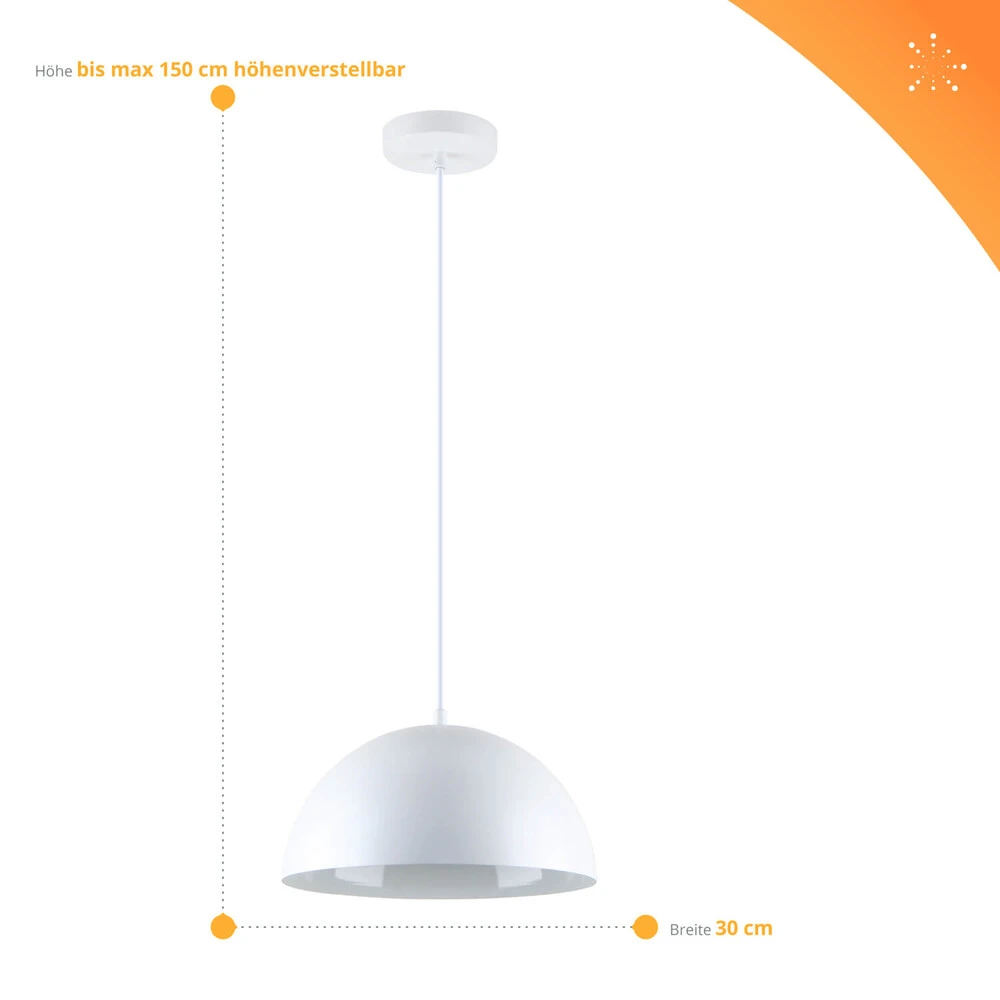 Der Metall Schirm ist robust und hat einen Durchmesser von 30 cm, das schwarze Kabel (bis auf die weiße Variante) und der Schirm zusammen ergeben ein Gesamtlänge von 125 cm. Die Leuchte ist Schutzart IP20 und somit perfekt geeignet für Wohnzimmer, Schlaf- oder Kinderzimmer.