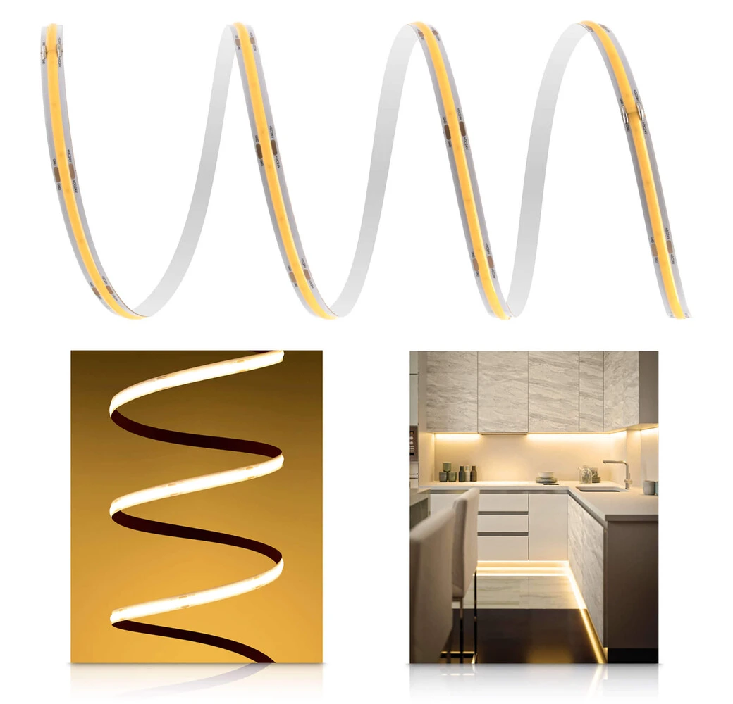 Mit unseren COB LED Streifen sind flexible LED Streifen verfügbar, die viele Vorteile miteinander vereinen. So erzeugen COB (Chip-on-Board) LED Streifen