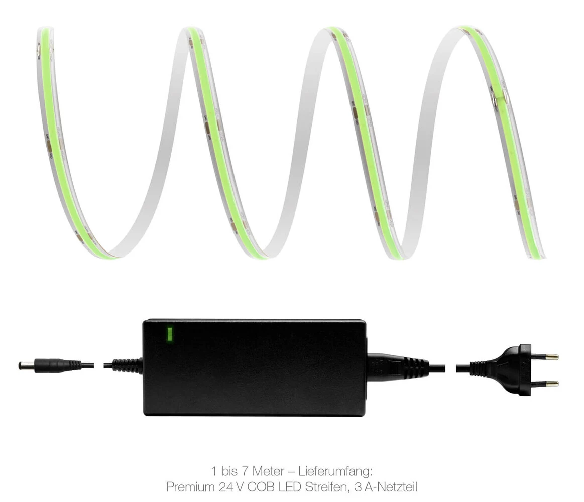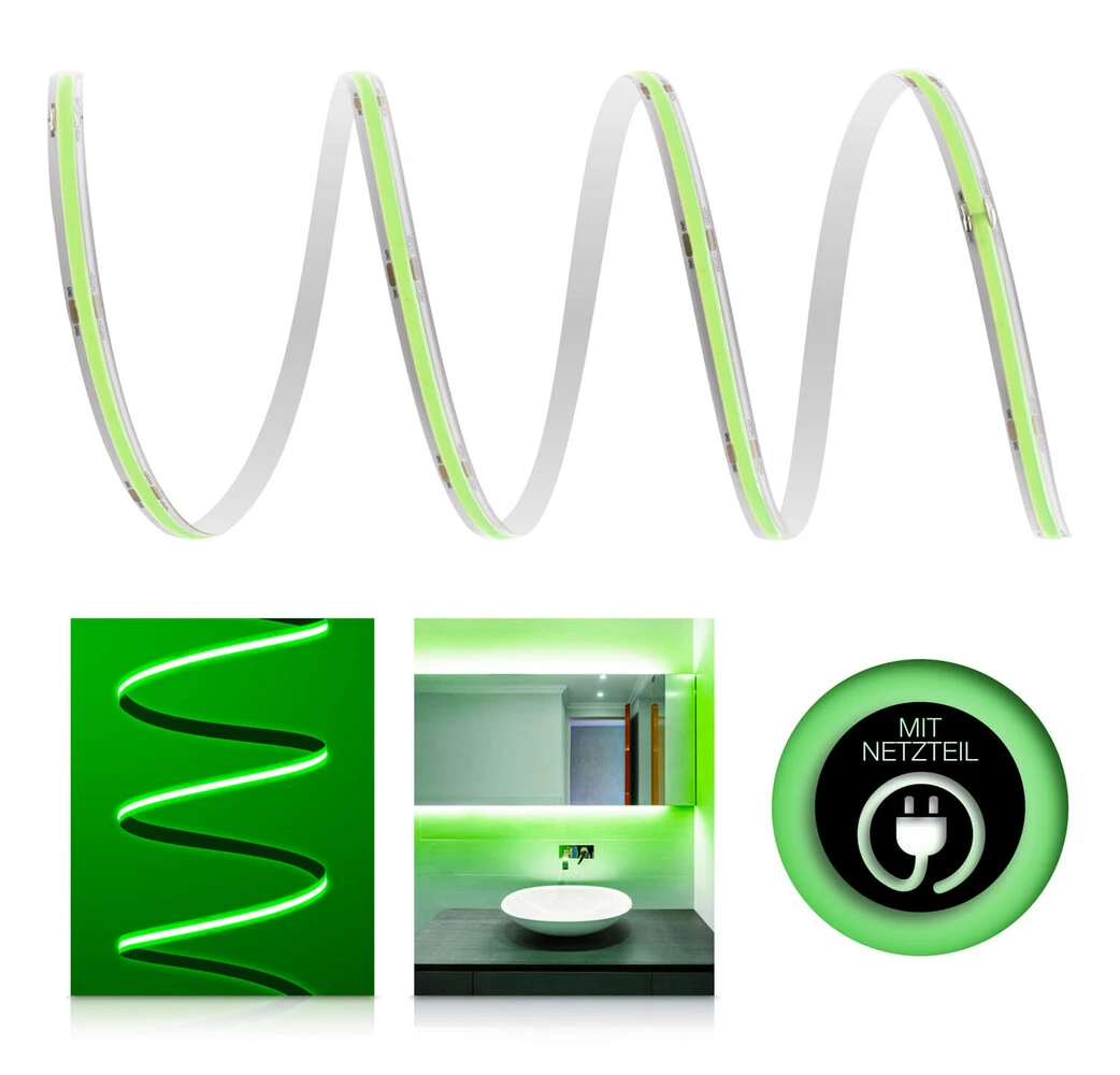 Mit unseren COB LED Streifen sind flexible LED Streifen verfügbar, die viele Vorteile miteinander vereinen. So erzeugen COB (Chip-on-Board) LED Streifen
