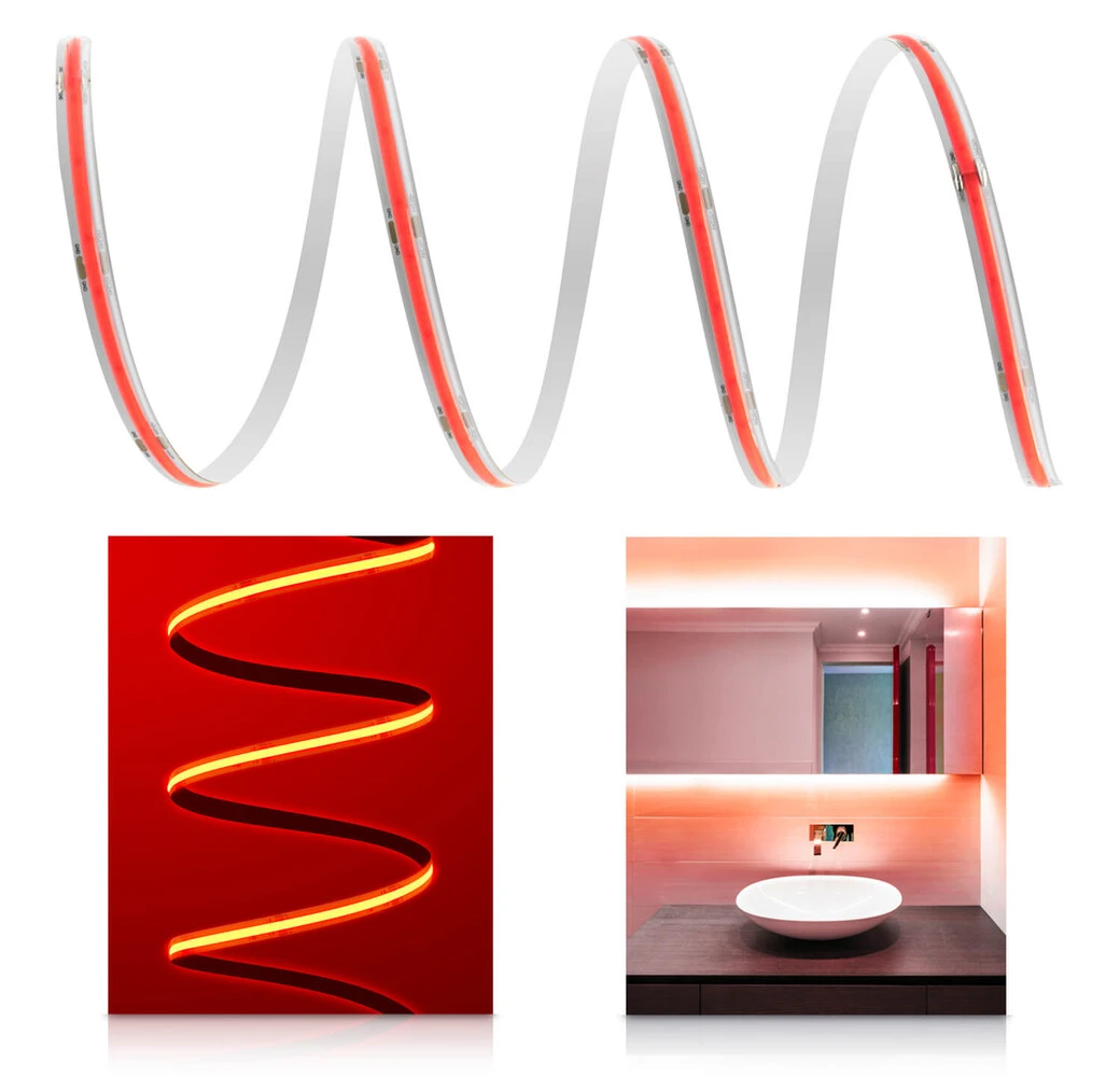 Mit unseren COB LED Streifen sind flexible LED Streifen verfügbar, die viele Vorteile miteinander vereinen. So erzeugen COB (Chip-on-Board) LED Streifen