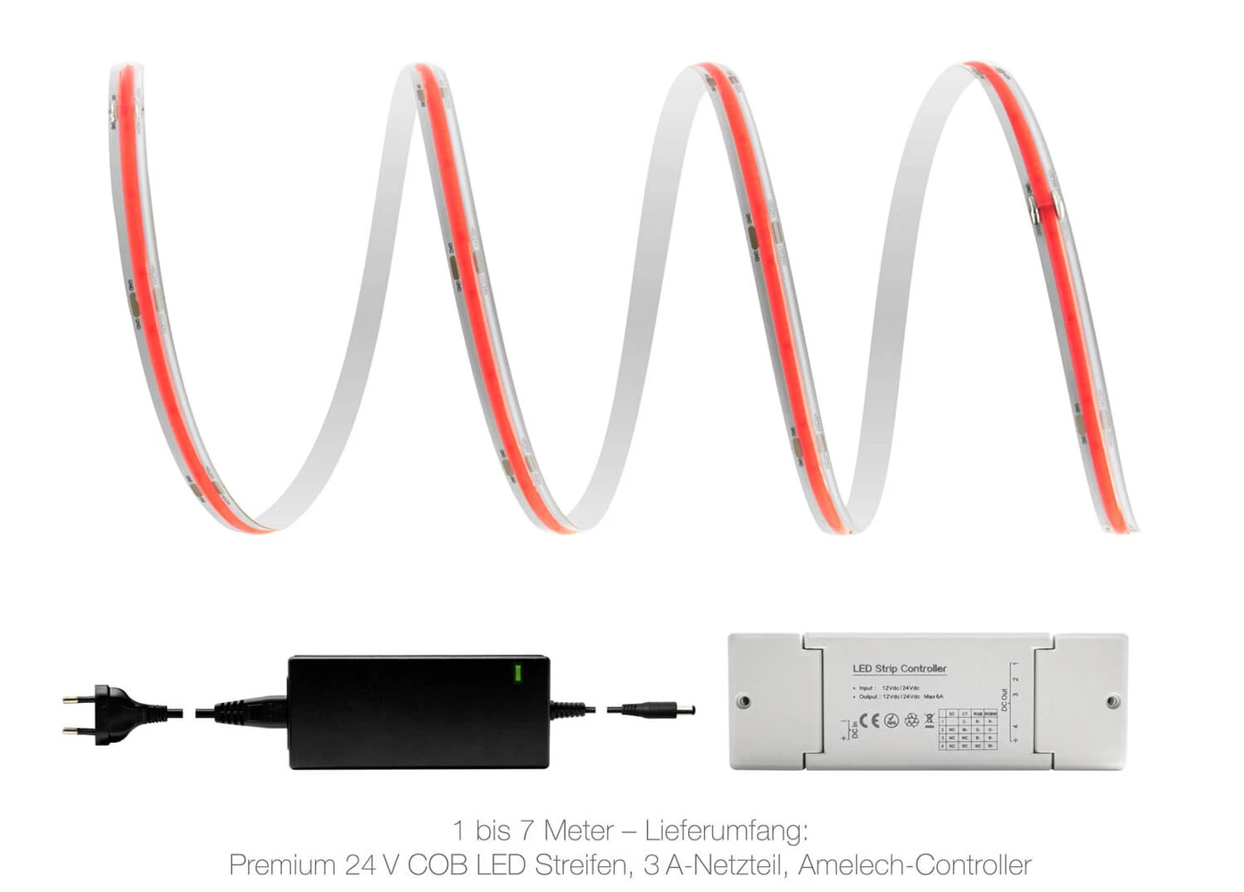 Premium 24V COB LED Streifen IP65 Rot Smart Home-SET & Netzteil Zigbee Controller 1m