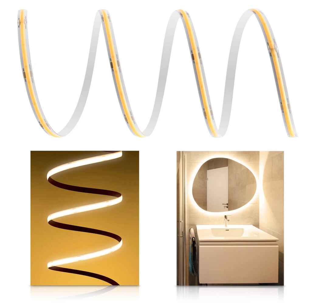 Mit unseren COB LED Streifen sind flexible LED Streifen verfügbar, die viele Vorteile miteinander vereinen. So erzeugen COB (Chip-on-Board) LED Streifen