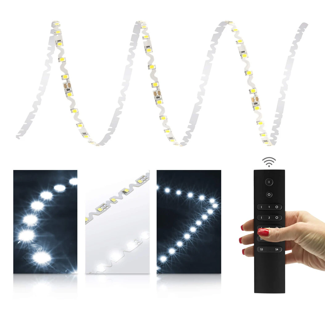 Die kaltweißen 24V S-Shape Streifen eignen sich durch ihre hohe Flexibilität hervorragend zur lichttechnischen Gestaltung kurviger oder eckiger Formen, wie Logos oder Buchstaben. Neben der ihrer hervorragenden Biegsamkeit bieten Dir die kaltweißen S-Shape LED Streifen natürlich noch weitere technische Vorteile: