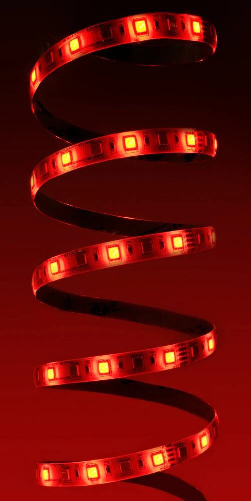 Durch eine Versorgungsspannung von 24 Volt ist die Lichtemission besonders homogen und das Farbspiel bei Bedarf angenehm kraftvoll. Dank der hohen Betriebsspannung von 24 V können bis zu 10 m am Stück geliefert werden. Ein Silikonmantel auf dem Streifen sorgt außerdem dafür, dass er spritzwassergeschützt (IP65) ist.