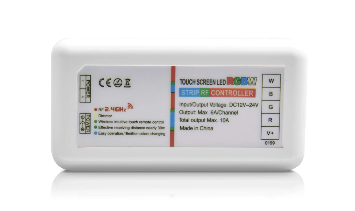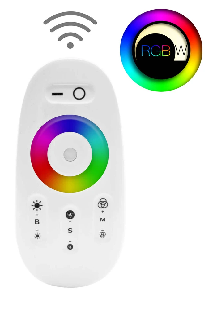 Die mitgelieferte 2,4GHz Fernbedienung verfügt über ein Touchpanel / Farbring für die Änderung der LED RGB Farbe durch Berührung. Daheim, in Cafés und auf Messeständen können Sie so die Lichtfarbe kinderleicht einstellen. Gedimmt werden kann per Knopfdruck auf der modernen One-Touch-Oberfläche. Controller und Fernbedienungen können frei gematched werden, wodurch mehrere Empfänger mit einer Fernbedienung oder ein Empfänger mit mehreren Fernbedienungen angesteuert werden können. Die Reichweite der Fernbedienung beträgt mindestens 20 m. Es wird für Sie keine unangenehmen Störungen durch beispielsweise die IR-Fernbedienungen des Fernsehers geben.