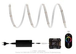 Die Funksteuerung erlaubt dimmen per Knopfdruck sowie das Ein- und Ausschalten des Streifens bequem aus jeder Richtung. Über die Fernbedienung lässt sich auch ganz einfach die gewünschte Lichtfarbe einstellen. Auch durch Möbel und Wände hindurch funktioniert die Steuerung ohne Probleme. Die hochwertige Touch-Oberfläche ermöglicht es, mit einem Touch die Atmosphäre in einem Raum komplett zu ändern und ein völlig neues Lichterlebnis fürs Heim zu schaffen. In diesem Set enthalten ist natürlich auch das passende Netzteil.