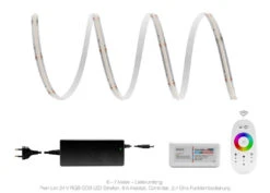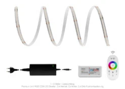 Die 2,4 GHz Funksteuerung erlaubt dimmen per Knopfdruck sowie das Ein- und Ausschalten des Streifens bequem aus jeder Richtung. Über die Fernbedienung lässt sich auch ganz einfach die gewünschte Lichtfarbe einstellen. Auch durch Möbel und Wände hindurch funktioniert die Steuerung ohne Probleme. Die hochwertige Touch-Oberfläche ermöglicht es, mit einem Touch die Atmosphäre in einem Raum komplett zu ändern und ein völlig neues Lichterlebnis fürs Heim zu schaffen. In diesem Set enthalten ist natürlich auch das passende Netzteil.