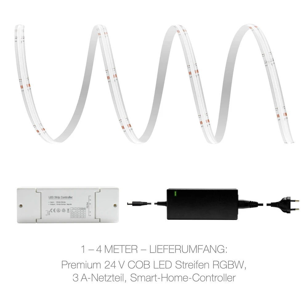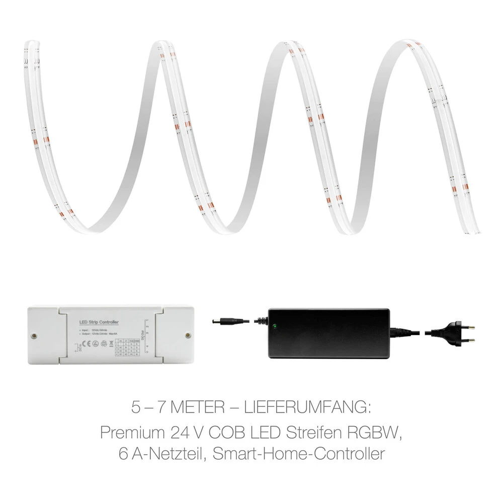 Die RGB-W COB LED Streifen bieten ein völlig neues Lichterlebnis und erlauben die Beleuchtung individuell einzusetzen. Die flexiblen LED Streifen vereinen viele Vorteile miteinander: