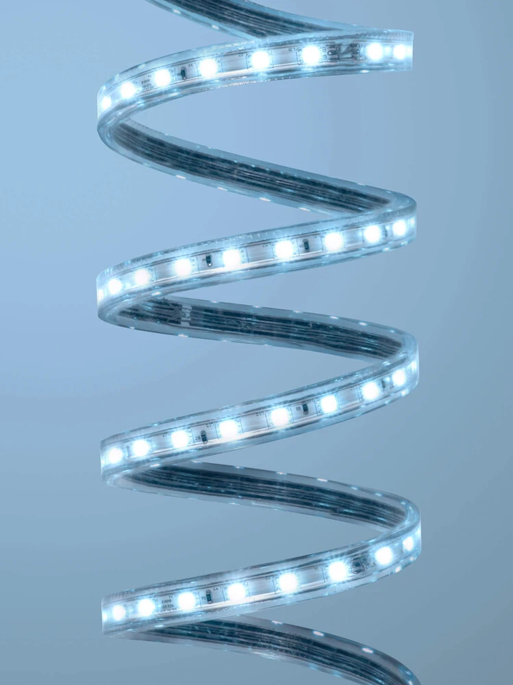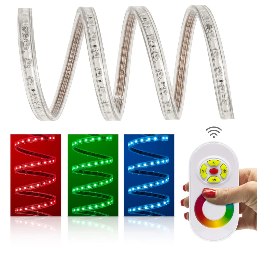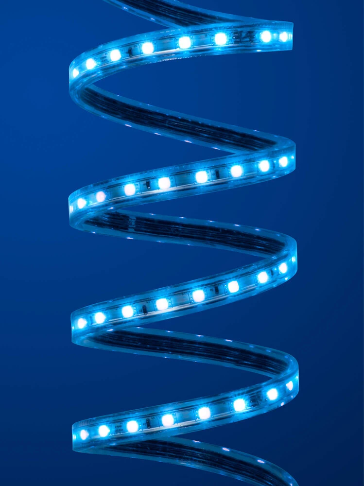 Die professionellen wasserfesten RGB LED Streifen werden gerne in Bars, Eingangshallen, Spa-Bereichen, Gärten und an Häuserfassaden verbaut. Dank 230 Volt und Schutzklasse IP68 (schließt IP67 ein) können großräumige LED Beleuchtungsprojekte selbst unter widrigsten Bedingungen damit realisiert werden. Die hohe Betriebsspannung ermöglicht LED Streifen mit einer Länge von bis zu 50 m am Stück. Die Konfektionierung kann meterweise erfolgen.