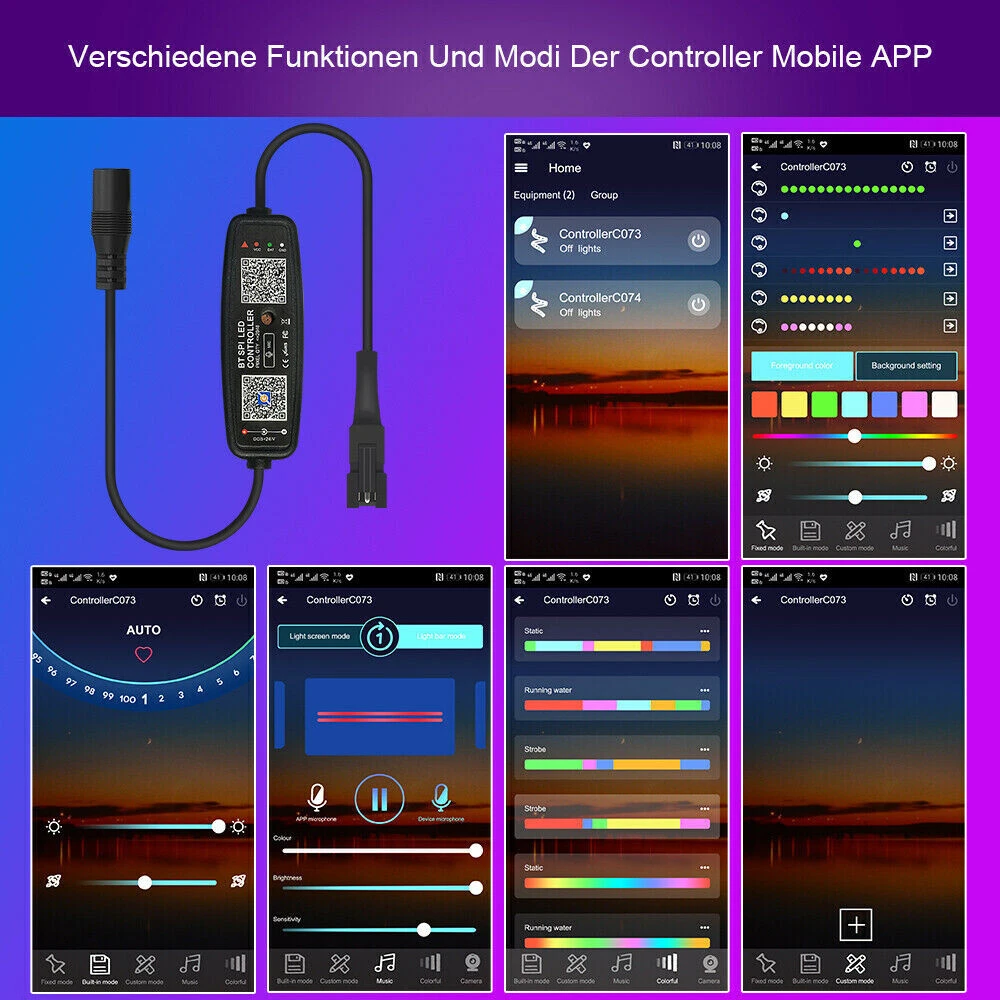 Mit unseren IC LED-Stripes lassen sich Lauflichter, Streckenfarbverläufe und sogar ganze Bilder aus Licht erzeugen. Musiksteuerung, sowie Sprachsteuerung und viele weitere Effekte lassen sich spielerisch mit dem passenden Controller einrichten.