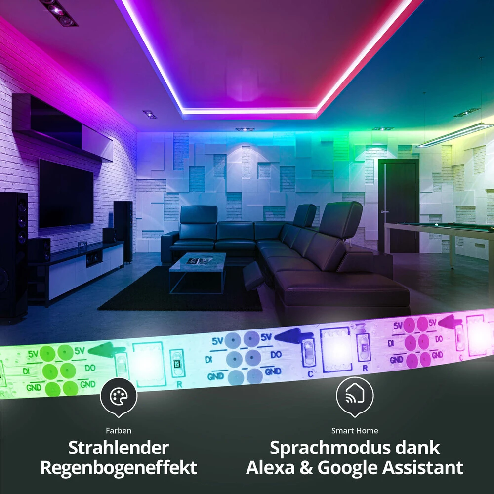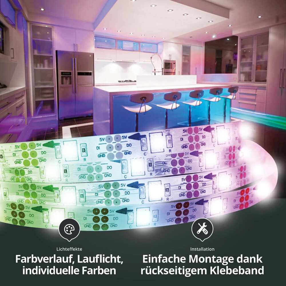 Digitale LED-Streifen, heute auch als RGB IC LED Streifen oder Pixel LED Streifenn bekannt, sind LED Bänder mit einer zusätzlichen Steuerungsebene. So sind neben den einzelnen LEDs auch zusätzliche Controllerchips verbaut, die einzeln angesteuert werden.