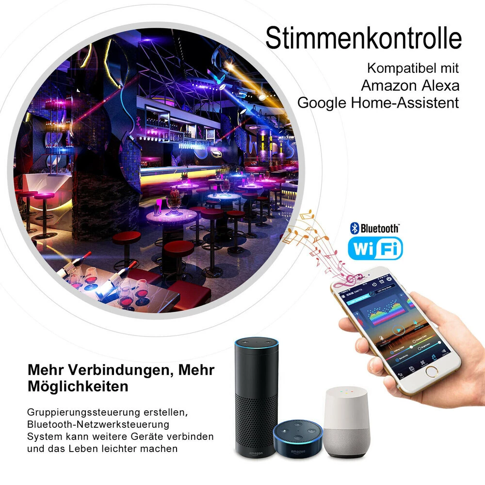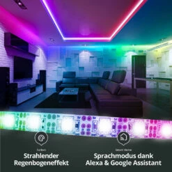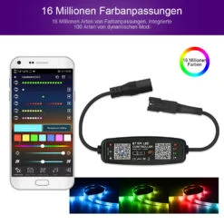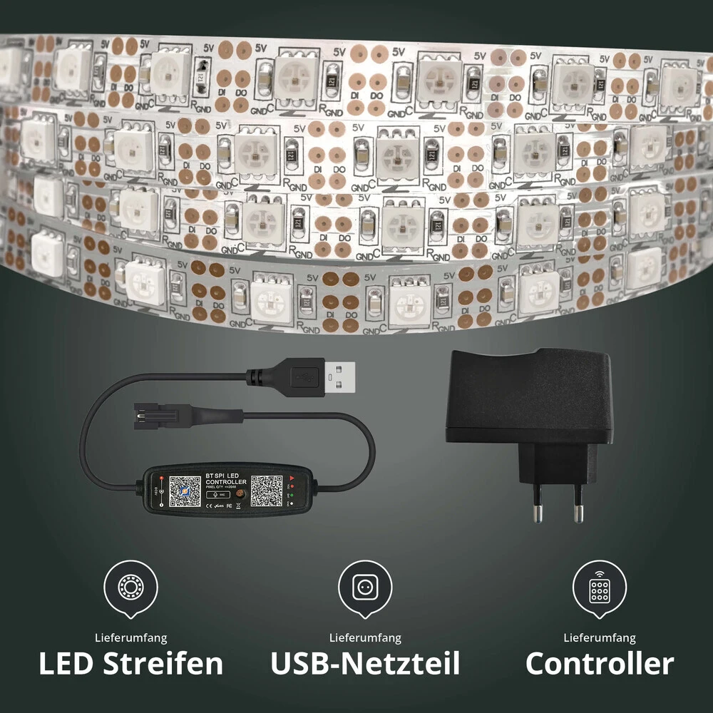 SET 5V RGB IC LED Streifen, IP20, 60 LED/m, 60 IC/m, Weiß 0,5 M Bluetooth USB Smarthome Steuerung Steckernetzteil 4A