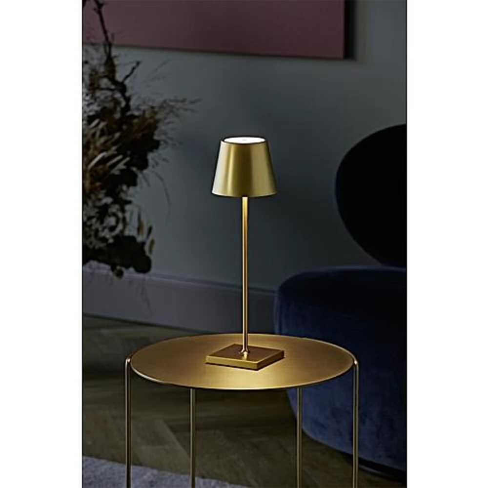 Innen & Außen: Die dimmbare Akku-Tischleuchte für den Wohn- und Außenbereich hält dank Schutzklasse IP54 (spritzwassergeschützt) auch Regenschauer aus.