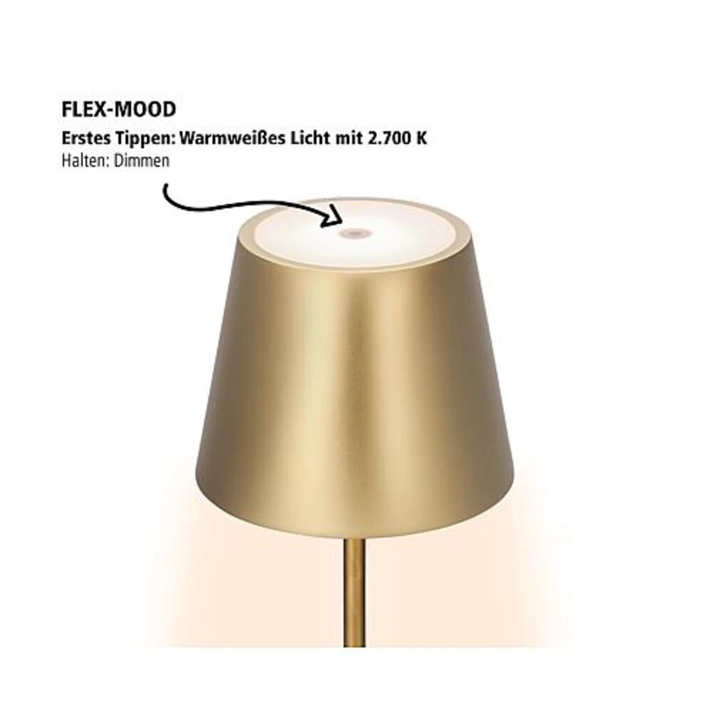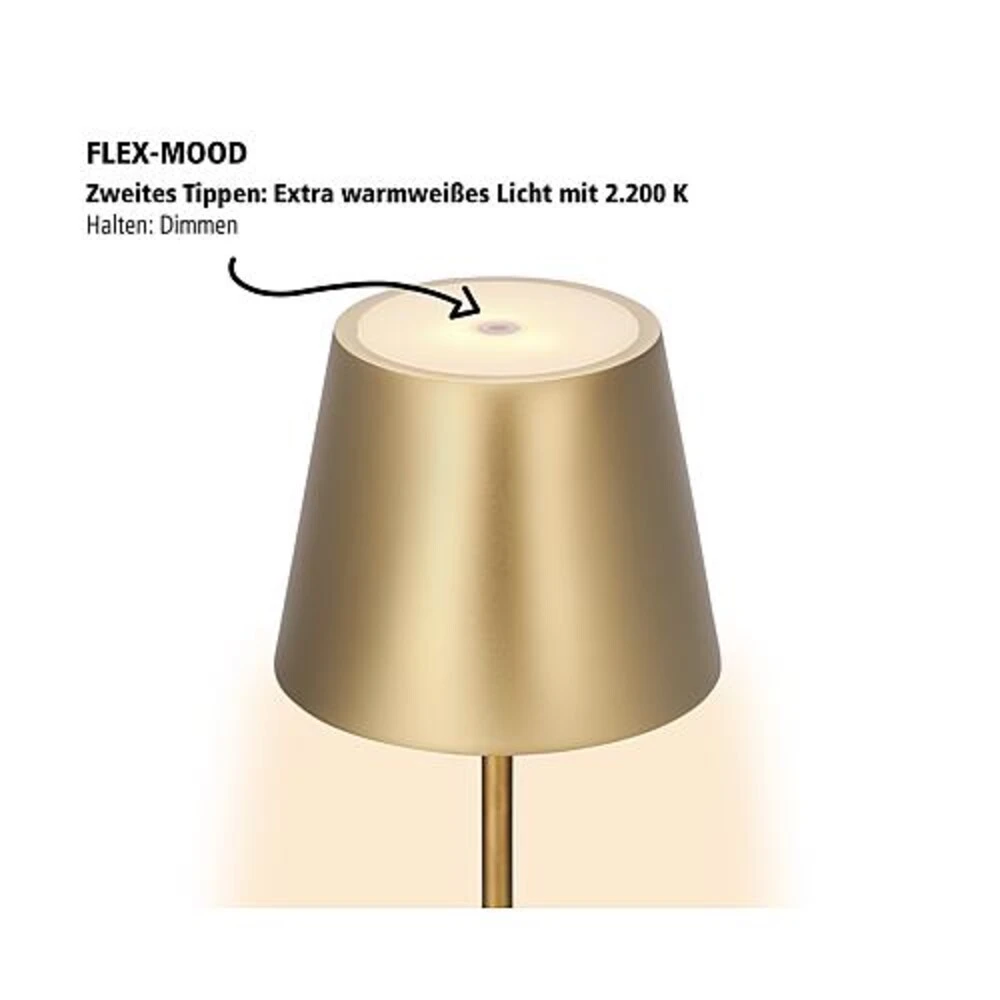 Stimmungsvoll: Das FlexMood-Feature bietet über den Touch-Dimmer warmweißes und blendfreies Licht in zwei Farbtemperaturen (2.700 K und 2.200 K). So verbreitet sie jederzeit die passende Lichtatmosphäre – auch als Nachttisch- oder Leselampe.