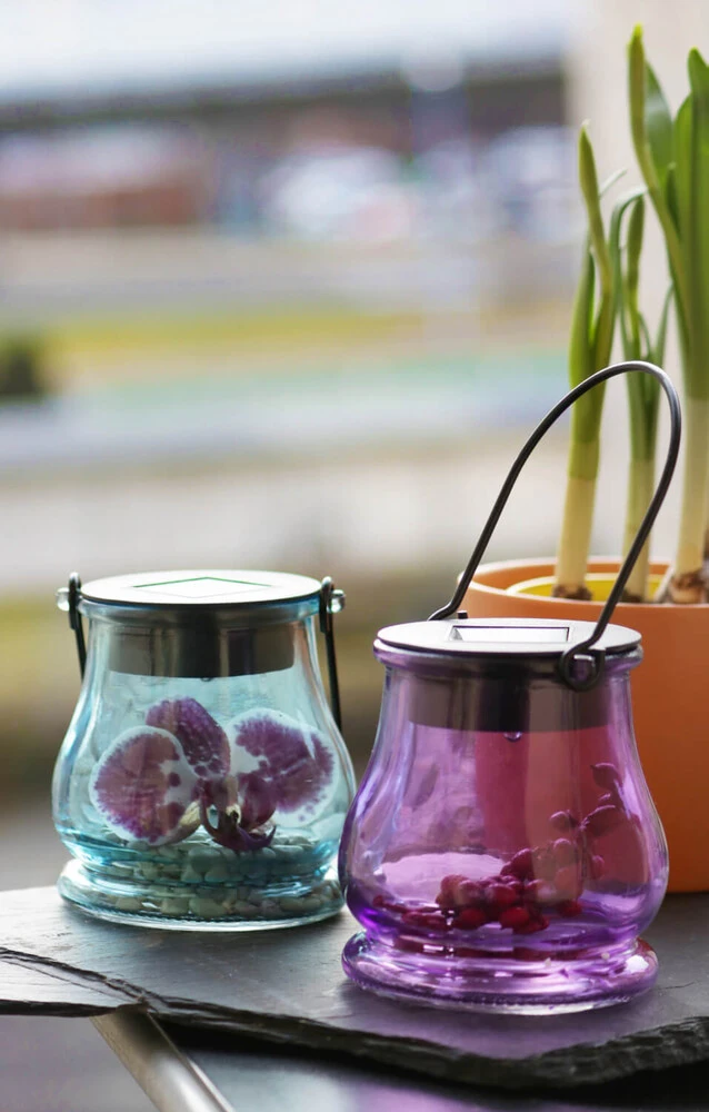 Mit einer Solarleuchte kann man nichts falsch machen. Besonders im Sommer und Frühjahr sind diese besonders beliebt. Einfach in die Sonne stellen und schon bei Dämmerung schaltet sich das Licht automatisch ein. Die dekorative Solarleuchte kommt in einem zeitlosen Design. Das transparente, farbige Glas lässt sich dekorativ befüllen, wirkt aber auch für sich allein. Das Solar-Windlicht lässt sich nicht nur im Außenbereich als Tischdekoration, Hängeleuchte und auch als klassisches Windlicht nutzen.