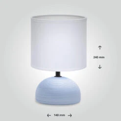 Tischleuchte Aus Keramik Mit Stoffschirm Rund Sockel E14 Weiß/hellblau L140xB140xH230mm