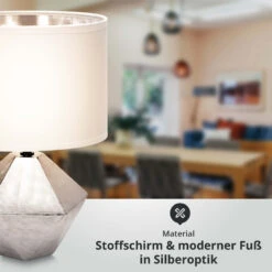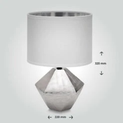 Tischleuchte Aus Keramik Mit Stoffschirm Rund Sockel E14 Weiß/silber L220xB220xH320mm
