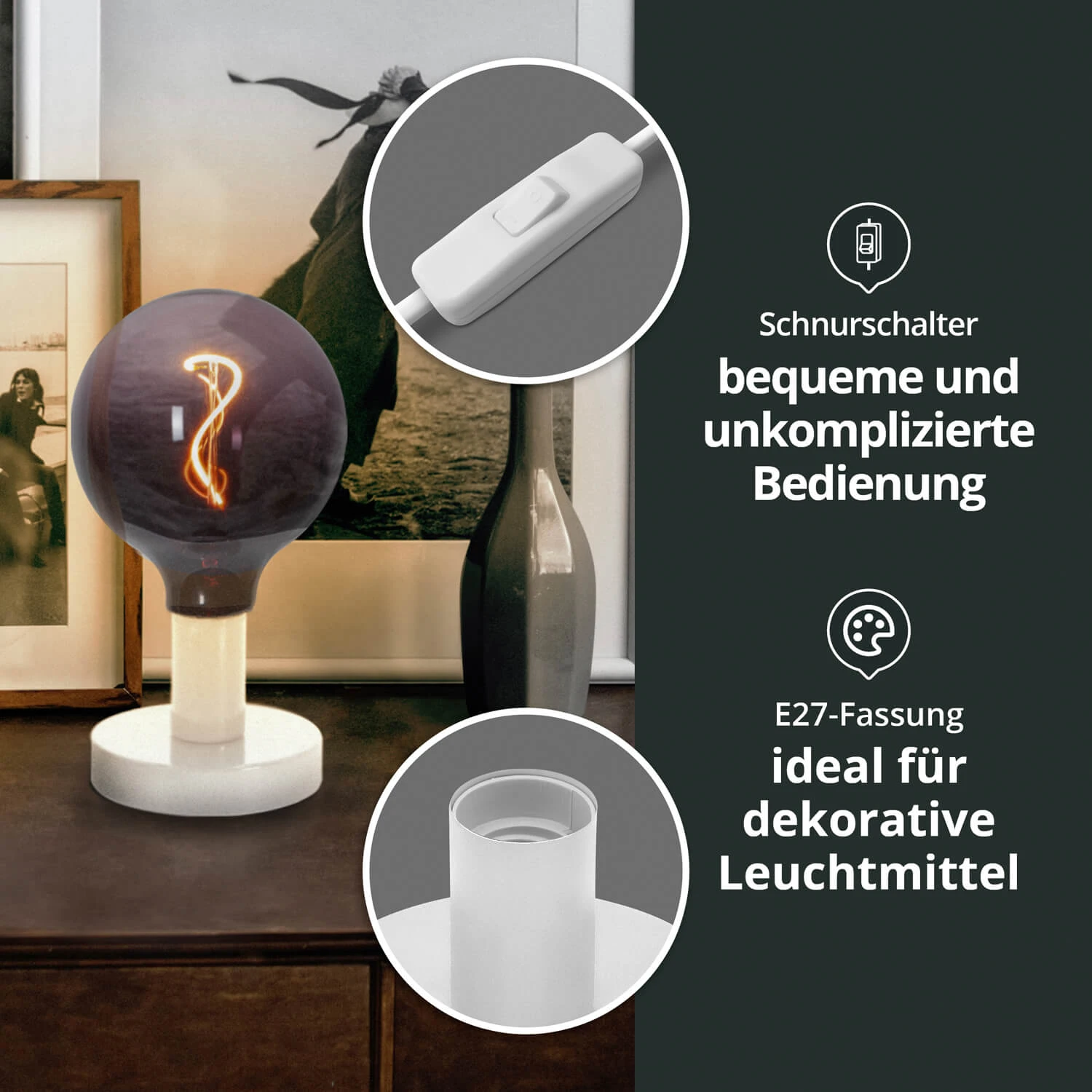 Die Tischleuchte kann über den Schnurschalter bequem ein- und ausgeschaltet werden.