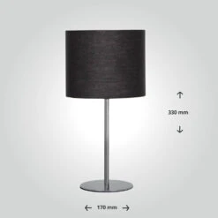 Tischleuchte Mit Metallfuß Chrom Und Stoffschirm Schwarz Sockel E14 B170xH330mm
